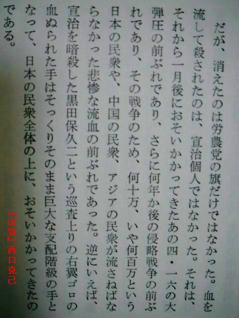 その一ヶ月後の4.16事件で、共産党員の大検挙が起き、わが国は大陸進攻、アジア制覇を目指す国民総動員の軍国主義奴隷国家に向かい満州事変から上海事件、太平洋戦争へとつき進んでいった。