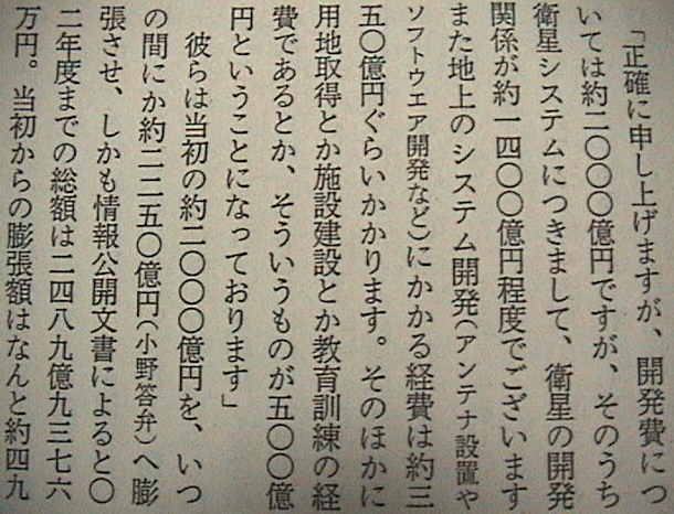 インチキスパイ衛星5022億円、維持運営費年間150億円!