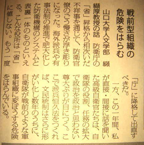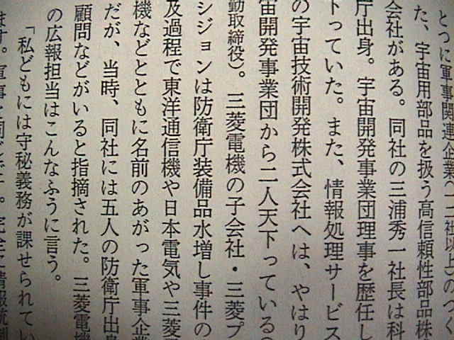 いかなる企業にいかなる理由があろうと、一旦、兵器に繋がる軍事製品に手を染めればその企業は軍需経済に汚染された悪質な病原菌である。病原菌が肥大していく社会や国家にはやがて正常な生活の終わりが来ることは歴史が証明してきた。軍需経済が行き着く荒涼たる社会を未来に引き継いではならない。病原菌が蔓延した社会を拒否する行動がいま一人ひとりの個人に問われている。