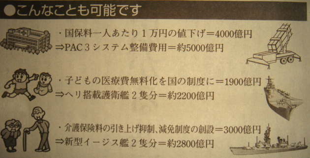 同じ国家事業でも無駄遣いが問題になっている諫早湾干拓事業が2500億円、川辺川ダム計画事業が3300億円(国交省試算)。5000億円の偵察衛星関係費がいかに巨額な事業かわかります。その上、公共事業のように完了するわけではなく、衛星の維持管理費や、衛星の寿命に対応した新たな衛星の開発やロケットの打ち上げ費用が毎年数百億円も必要です。