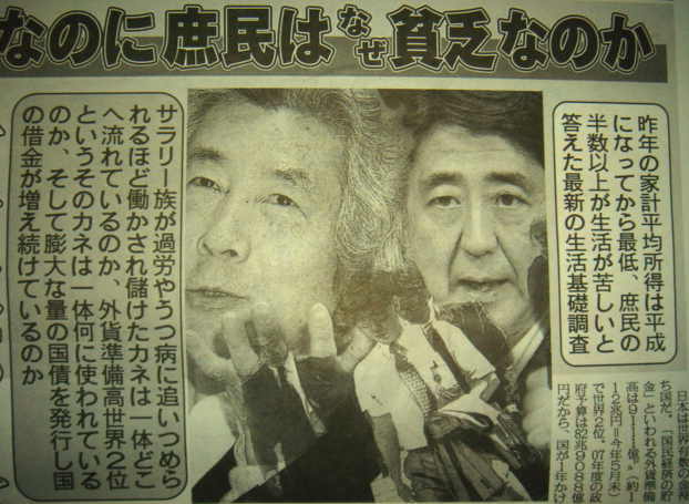 「人殺し戦争経済」に移行するためには小泉や安倍などという小学生並みのトッチャン坊やをでっち上げて戦前以上の強権弾圧体制を次々と打ち出しながら見え透いた詐欺を続けて行くしかないのだ。
