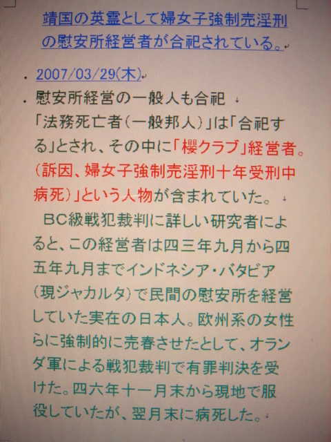 婦女子強制売淫刑10年の慰安所経営の犯罪者が英霊として合祀され、右翼の街宣車が走り回り、軍事産業に尻尾を振る神社とは一体何なんだ。