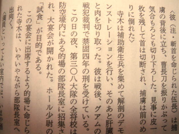・・・最初は海軍が処刑した捕虜を喰ったが、そのうち喰うために処刑するようになった。