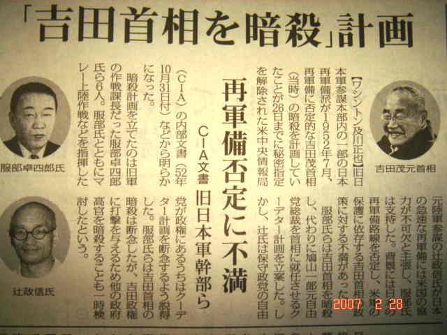 再軍備拒否の吉田茂首相暗殺テロを計画し、