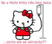 it says... in portugese... If hello kitty has no mouth how does she eat?
