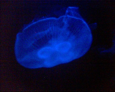 Here is a jelly fish. They have it illuminated with a black light which makes it look cool. Don't you agree?