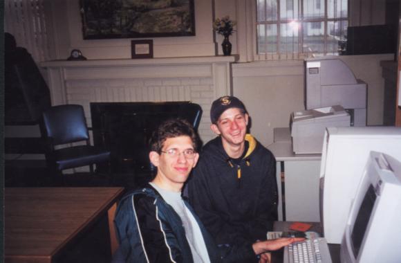 This is Ryan and Stephen accompanying me on my first storm chase. We are in Osceola, IA using a computer at the local library to get weather data.