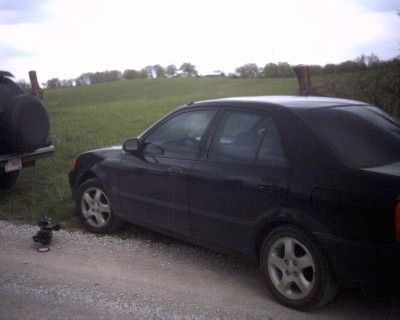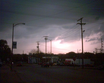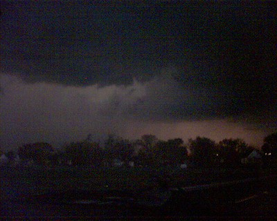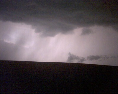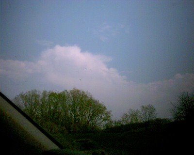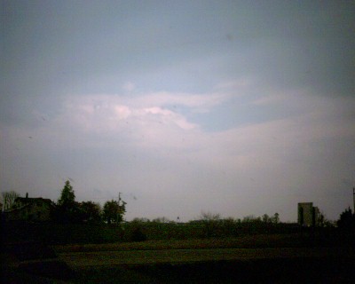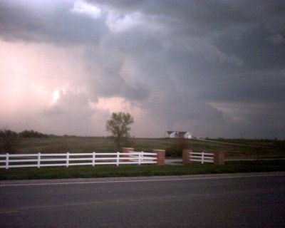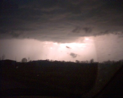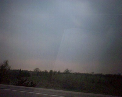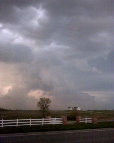 This was one of the better chases I have gone on. We didn't see any tornadoes, but we were positioned correctly to see one. The chase took place on April 30, 2003. We left Ames, IA around 1:15 in the afternoon and headed south on interstate 35. As we went south, the skies cleared off. This was an indication that the front was nearly overhead. Thus, we decided to head west along the front into southwest Iowa on highway 2. After awhile skies clouded up again and we had an indication by some RUC model data that the severe weather would break out in northwest Missouri, so we headed south into the state. As we did this, we noticed towering cumulus clouds building all around us. As we crossed the border into Missouri, we heard a warning was issued for extreme northwest Missouri. We decided to position ourselves on the south side of this storm and we ended up in Maryville, Missouri. This is where we saw our first wall cloud. It was unorganized, but we noticed some rotation. We then headed south out of Maryville on word that another storm had formed, and about 5 miles