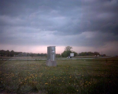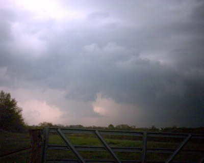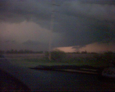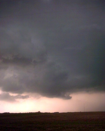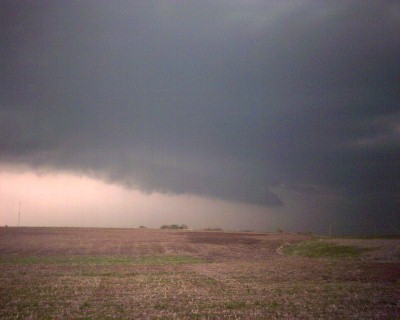 south of Maryville, we saw a very well defined wall cloud, and just some dirt swirls on the ground. No tornadoes formed. We tracked this storm across northern Missouri, through Bethany, and into Mt. Aire. The storm was a classic supercell, but as time expired, it became engulfed in rain and it was impossible to spot a tornado with the wall cloud. There was a reported tornado about 5-8 miles north of our position, but it was in the rain band. When we reached Mt. Aire, we ended our chase due to darkness and went back westward to Bethany to grab a bite to eat. This is when we saw our first hail of the day. But we were protected by the gas station roof. Overall, this chase went very well, and we were in the perfect position and we had this all planned ahead of time. It was a great chase.