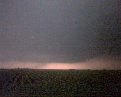 At this point the wall cloud is being swallowed up by the rain shaft.