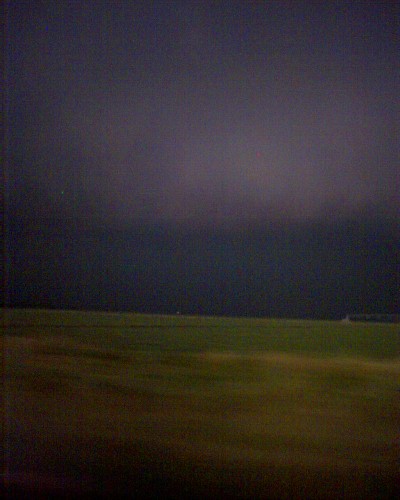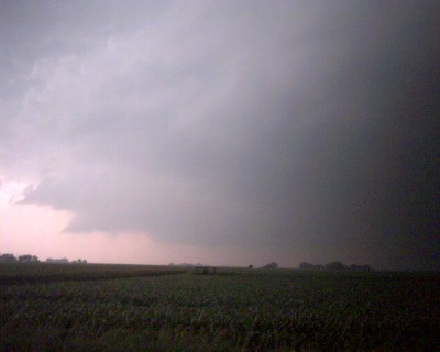This chase day took place on June 22, 2003. Me and Stephen attended a college world series game that day in Omaha. After the game was over, we headed out to the northwest of Omaha. We headed towards the Columbus area. However, before reaching Columbus, storms began firing southwest of our location, so we began to head south on highway 81 in Nebraska. We then began following the storm that produced the largest hail in history. The hail was reported to be the size of volleyballs. Fortunately for us, we only got into some pea size hail and we took cover underneath a gas station roof. Here are the pictures: