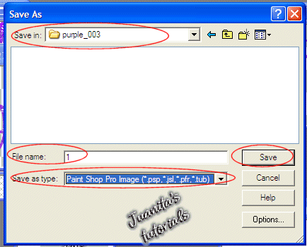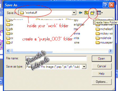 Click on one to select it and go to file/save as, and in your "Workstuff" folder that you created, make a folder called "purple_003" or (your own name) "juanitapurple_003" or something like that.