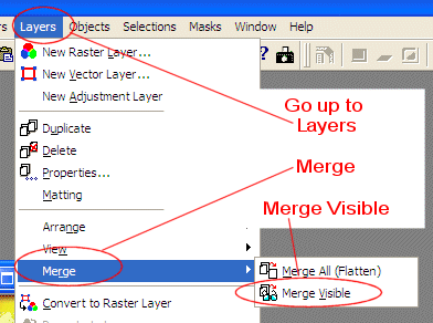 Now go up to "Layers", down to "Merge", "Merge Visible."