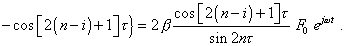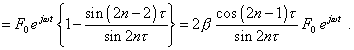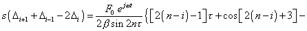 The presented solutions emphasise again a vast diversity of vibration forms and patterns dependently on the line type and parameters. Check the correspondence of presented solutions (13), (16) and (17) to (12). It will be sufficient to substitute them sequentially into the first, arbitrary i th and the last equations of this system. For the periodic regime on the left part of the first equation of (12) we yield |