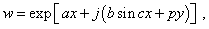 where a, b, c, p are some constants. As we see from the construction, this function implements the one-valued continuous mapping of a semi-finite belt of a plane Z onto outside of the circumference of the plane W (the negative semi-finite belt will map inside this circumference, and in this domain the mapping will be also one-valued and continuous). Of course, (4) does not satisfy the Caushy - Riemann conditions. Apply the above conditions of "quasi-conformity" (2) and (3) to (4). The first particular derivatives of w with respect to x and y will have the following form: |