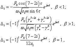 periodical solution (at This feature gives us the reason to seek the general solution as a series beginning with the fundamental harmonic corresponding to the external force frequency |