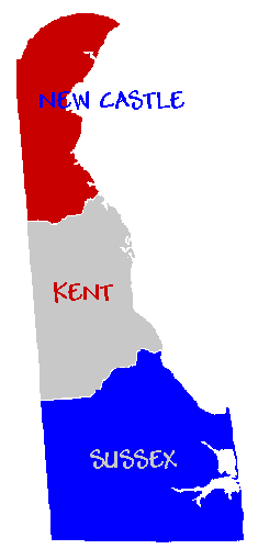 The state of Delaware only has three counties, New Castle, Kent, and Sussux. Just select the county you wish to visit and a list of that county's fire companies will appear.