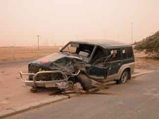 This is just a small portion of the auto accident images I have seen here in Kuwait. Just about all the accidents on the freeways are major ones involving rollovers. I do not have the satistics on fatalities, but I am sure they are high. Also noted was the lack of airbags even in the USA manufactured vehicles. This is what the fire department here in Kuwait rolls mainly on vehicle accidents verses fires since most structures are cement. Vehicles involved in accidents will sit on the side of the road for weeks or even months. Towing companies apply their tow company sticker on the vehicle in an effort to purchase the wrecks from the owner.