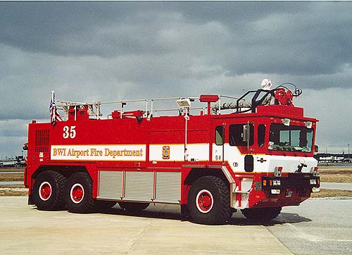 A 1999 T-3000 crash truck from BWI Airport in Maryland. This is only the second red crash truck I have seen but I was told this is the new color for this type of equipment. |