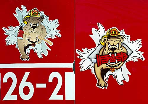 These are two of the bulldog graphics found on Townsend's Macks. |