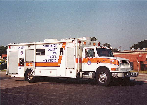 A very sharp looking EMS Special Operations command center. This monster belongs to Charleston County, South Carolina and is a 1999 Taylor. This unit is equipped with a compressor station for refilling SCBA bottles, diver bottles, EMS equipement, you name it, it's probably here. |