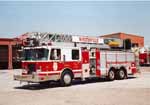 In the "Chicago" style paint scheme is this very sharp 1995 Sutphen 100' tower belonging to the Rohrerstown Fire Company just west of Lancaster, PA. Check out their pumper with the same paint scheme. |