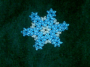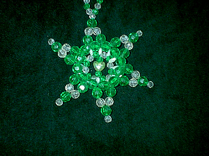 If your looking for tree decorations, window decorations or just something to hang anywhere then you'll love these beaded snowflakes and stars. They come in defferent sizes and colors. The blue snowflake is made of a bunch of smaller snowflakes and its made out of blue and white rondells. The pink and white star is made out of seed beads,rice beads, and facetted beads. The green star is made from different sized green and white facetted beads, white rice beads, and a green heart bead in the center.