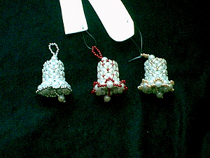 These beautiful hand beaded bells are shown in silver and white, peach and white, and red and white. You can choose any colors to mix and match with your holiday or everyday decor. There made with rice beads,pearl beads,and seed beads.