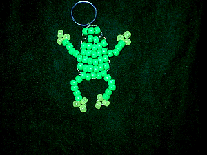 If your looking for a one of a kind keychain you found the right page. We have keychains that glow in the dark, sparkle, or just plain solids. Choose from frogs, geckos, alligators, dragonflies, and crosses. All of our keychains are made out of pony beads and wire.