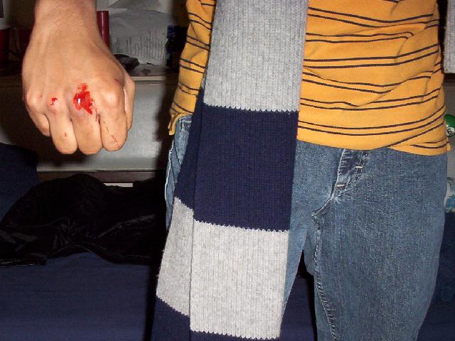 So as a stress reliever I played bloddy knuckles with my best friend, Scott. I did not loose, but I did get a bit bloody.