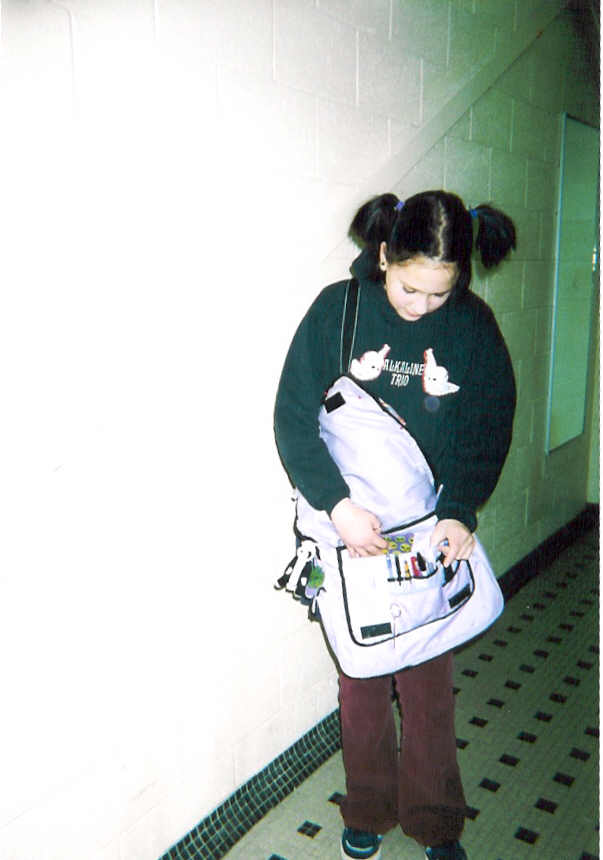 megan and her bag in the locker room