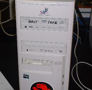 The system box has 2 draws the one on the top is the CD Rewriter, the one below is the CD ROM, the small draw at the bottom is the Floppy Disk Drive.