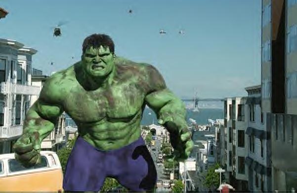 This is Ang Lee's magnificent Hulk. Isn't he great? I mean come on! This thing jumed onto the highest part of the Golden Gate Bridge, threw a huge elevator plate through the wall like it was a frisbee, chucked a freaking tank, I mean what more could you want?!?!