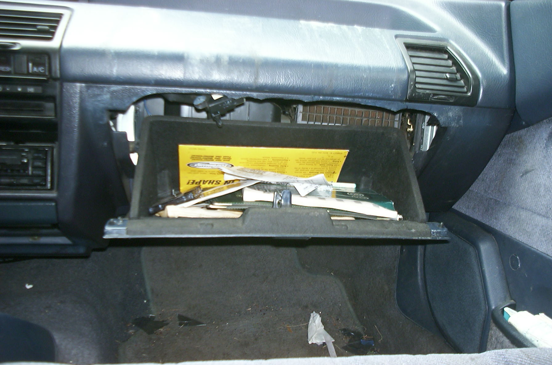 - Glove compartment: has a broken lock, so it remains open at all times.