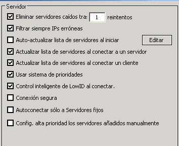 esta opción eMule recogerá la lista de servidores desde el