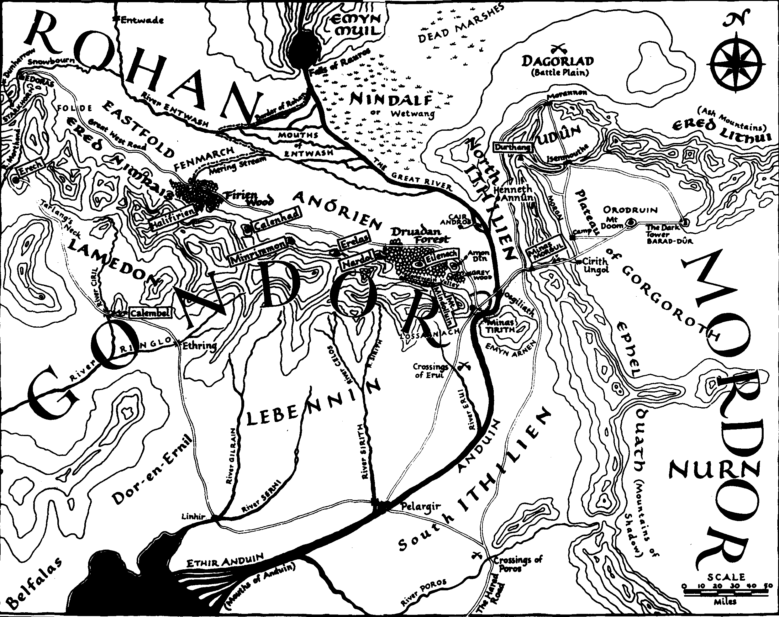 A large map encompassing most of southern Middle Earth.