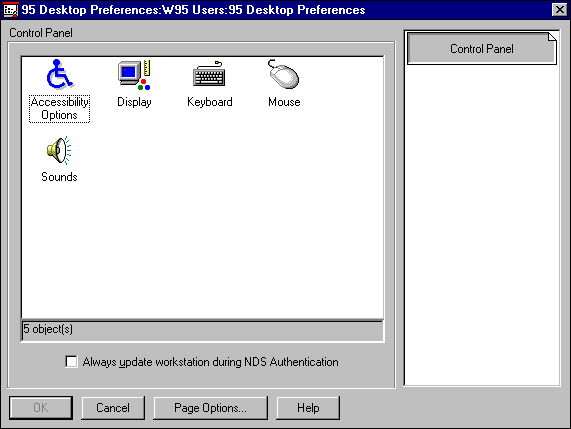 | 95 User Policy Package | 95 Desktop Preferences | Manages the Windows 95 desktop. |
