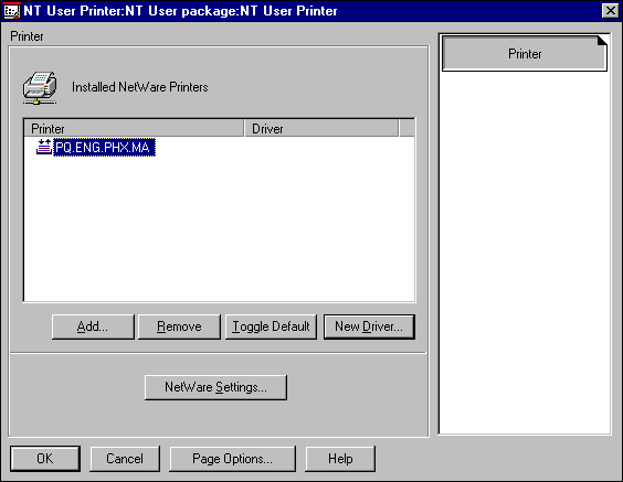 | NT User Package | NT User Printer | Creates and configures printers for NT users. |
