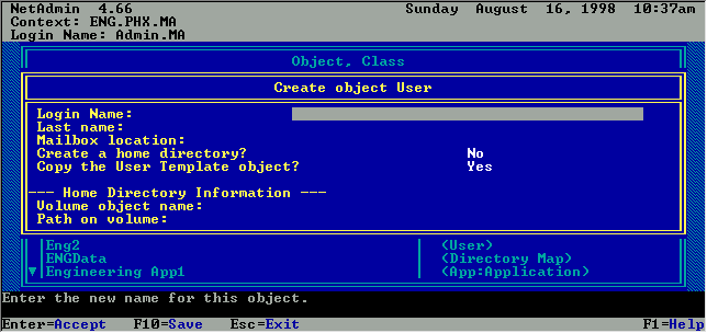 Figure 5: DOS version of NetAdmin User object utility