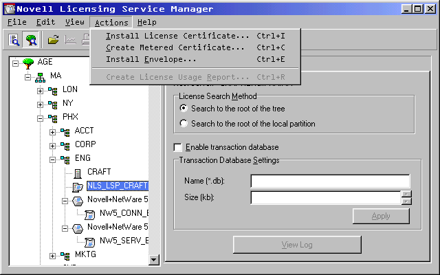 Figure 9: Installing a license using NetWare Administrator