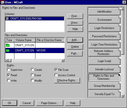 | Add the rights granted through security equivalence, either implied or explicit. | SYS:PUBLIC\WIN32 | [RFA] |