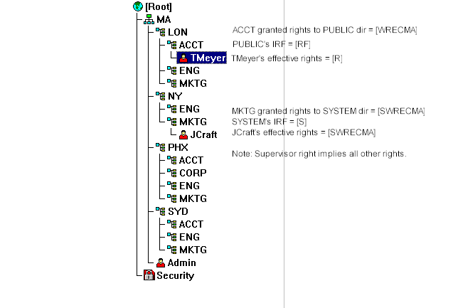 Calculating effective rights is a skill that is absolutely required for planning and administering a NetWare network. The following example will use the Jcraft user in the .OU=MKTG.OU=NY.O=MA context shown in Figure 6-4.