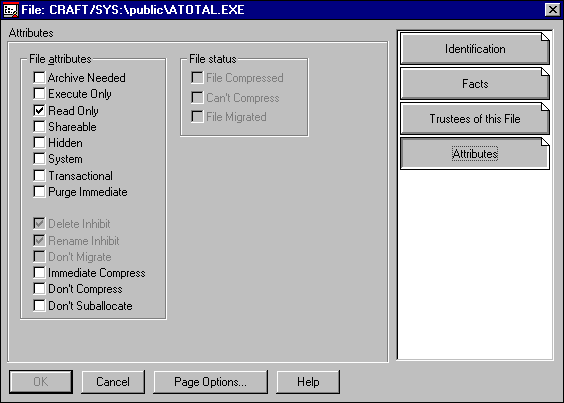 | Archive Needed | File | A | Whenever a file is changed, this attribute is set automatically by NetWare. This flags the file for backup during incremental or differential backups. |