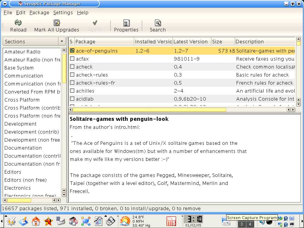 Synaptic is a graphical package management program for apt. It provides the same features as the apt-get command line utility with a GUI front-end based on Gtk+ or WINGs.