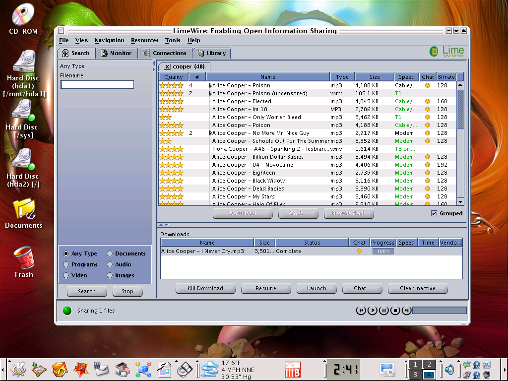 * Share files on the gnutella network (Limewire, BearShare, Xolox, Gnucleus, Shareaza, Morpheus ...)