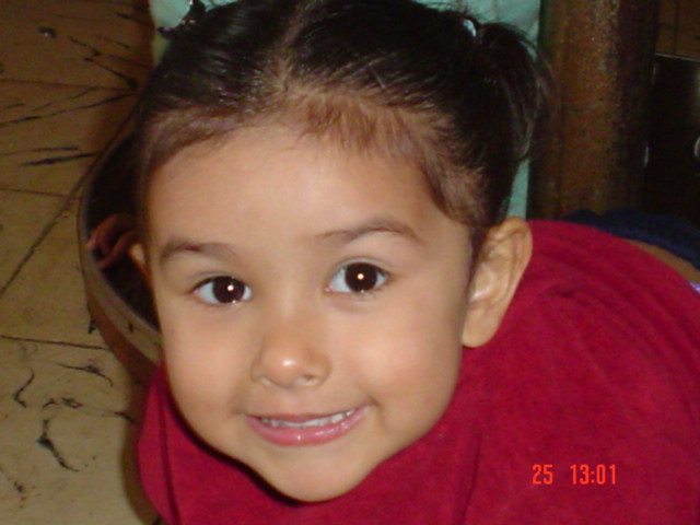 Ella es mi hija Tanya Carolina, ella tiene 4 años de edad, y si tu le preguntas su nombre ella contestará "Tanya Carolina, Patas de Gallina" o " Tanya Caroleta, Patas de Galletas"