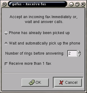 Click on the "OK" button and gefax will automatically wait for faximilies the next time you run it.