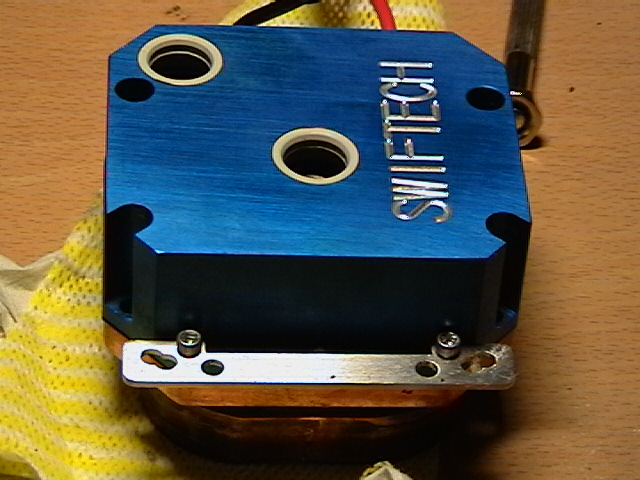 Här är lite bilder på mina försök att modda in lite större anslutningar på mitt Swiftec block, eftersom blocket var utrustat med 3/8 anslutnigar. Att snabbkopplingarna helt plötsligt började läcka gjorde ju inte saken direkt bättre =/.