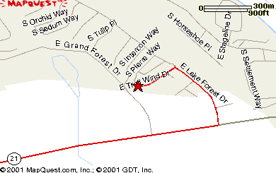 Go east on Highway 21 until you reach Lake Forest Dr (about