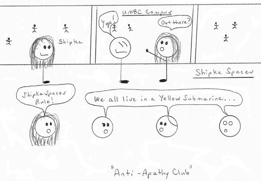 The apathy that existed on the UMBC campus existed outside of the Shipka Spaces. Oh it existed alright and still does: it's the nature of a commuter campus. Going home every evening and every weekend is the cause of the lack of genuine relationships on campus. It's even worse on a city campus. Not true of a rural campus. There's no way to get away from each other. You are part of the university community days after day for 15 weeks and there is no where to go or retreat. As in the Shipka Spaces, one has to quickly learn how to get along with each other and the community or be labeled "un-mutual." In the Shipka Spaces and on a rural campus, you'd never survive without forging friendships. On commuter campuses and city campuses where you meet for small limited windows of time, the atmosphere sets up a "What the Hell do I care about you" mentality counter-productive for collaboration.